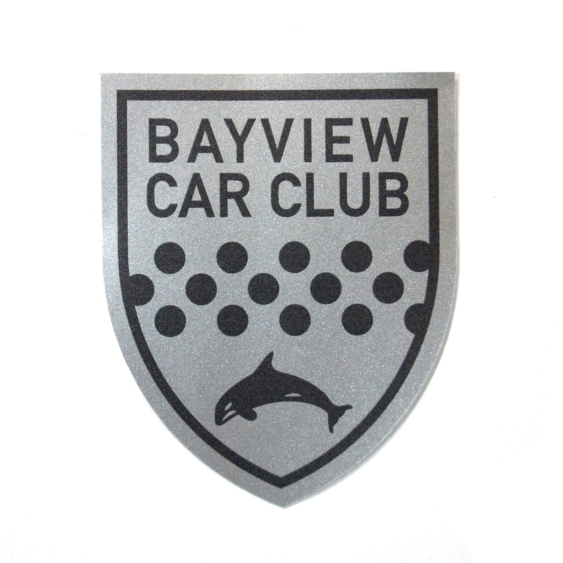 Orca Badge design printed on metallic silver vinyl. Polkadots and a killer whale, what's not to love?